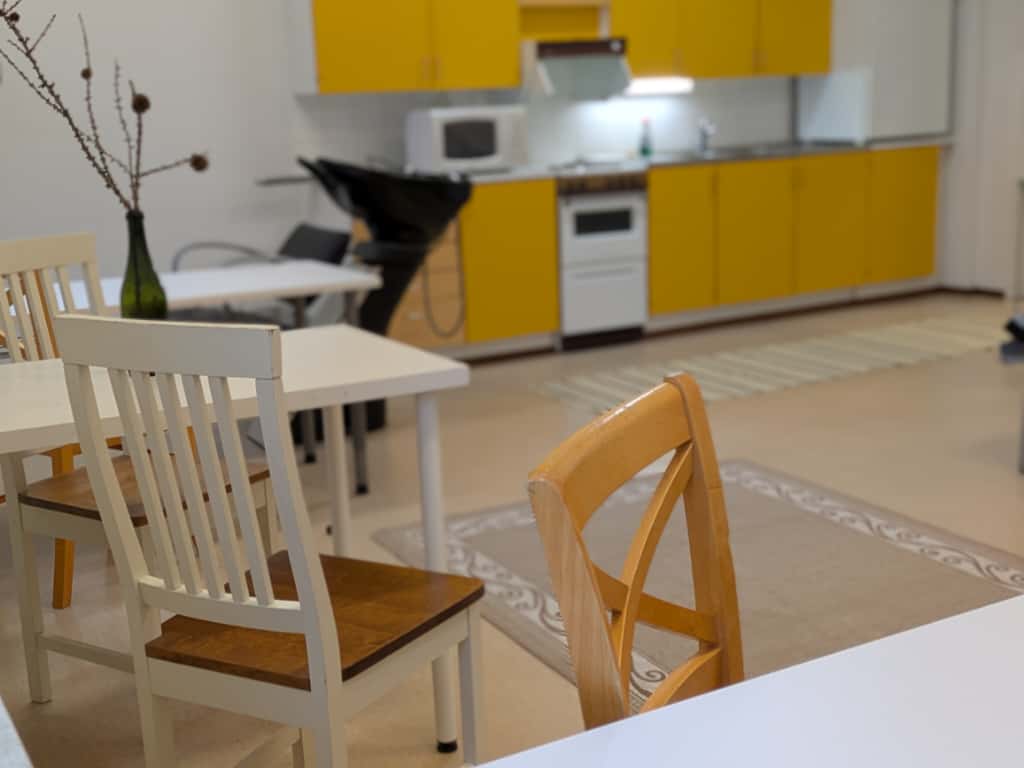 The hostel also features a small shared kitchen equipped with a stove, refrigerator, microwave, coffee maker, and kettle. Additionally, there is an exercise gym room on the second floor and a sauna in the ground floor.