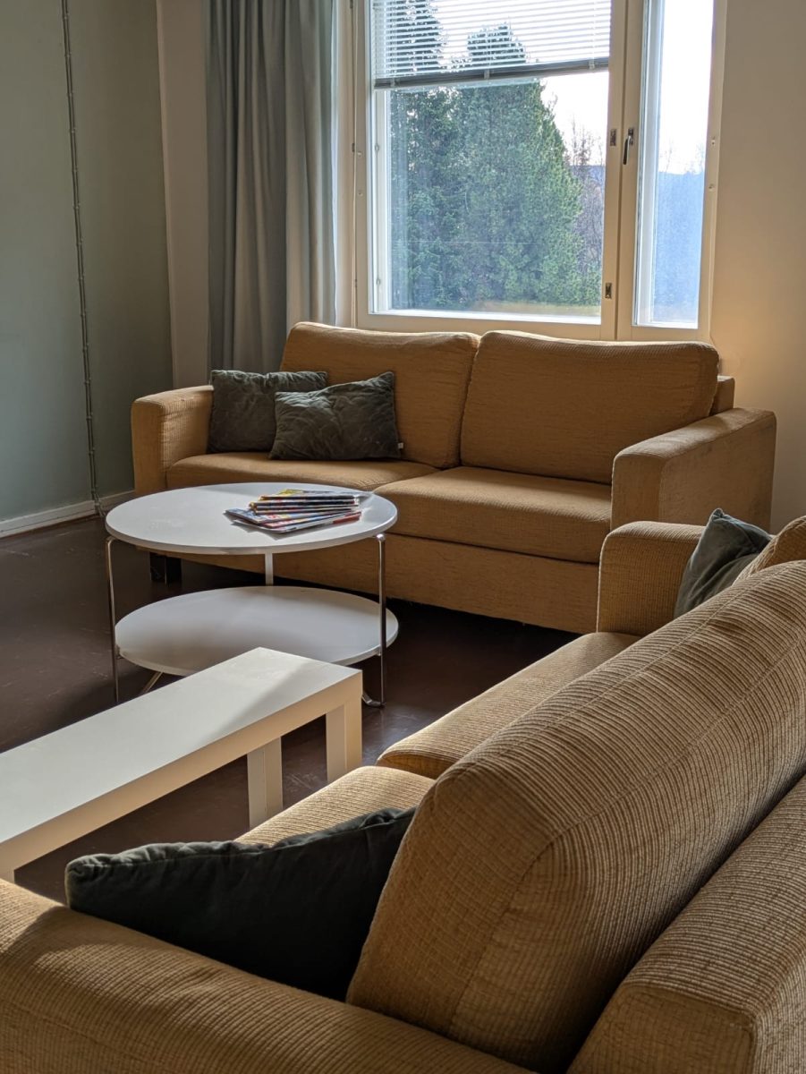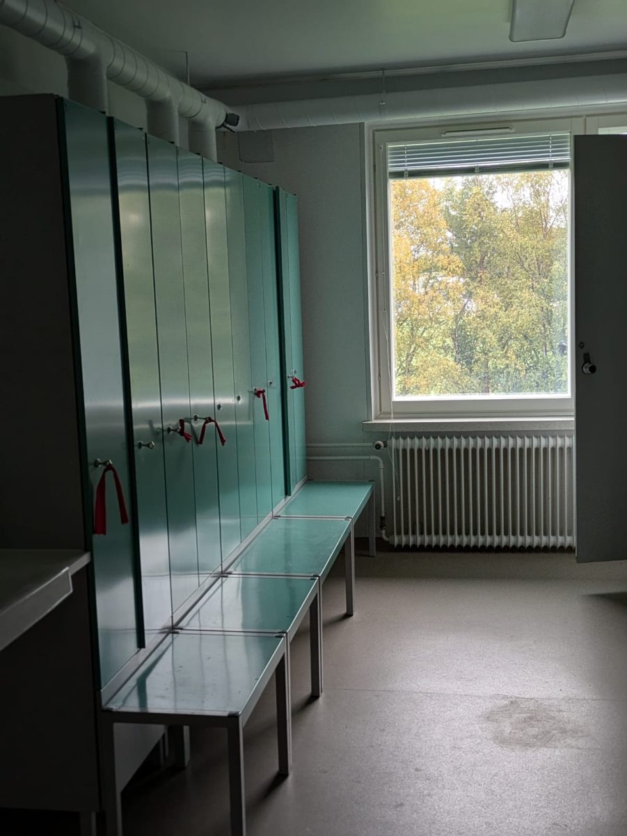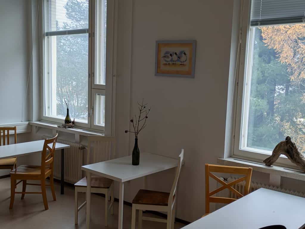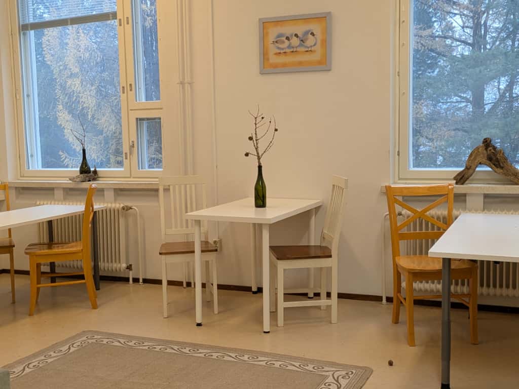The accommodations at Grand Hostel Ivalo are located on the third floor of the old home economics school building, offering a total of 13 rooms for 1–4 people (please note, there is no elevator). Room sizes start at 16 m². Each room is equipped with a bed, a table, and a chair. Separate shared bathrooms are available for men and women.